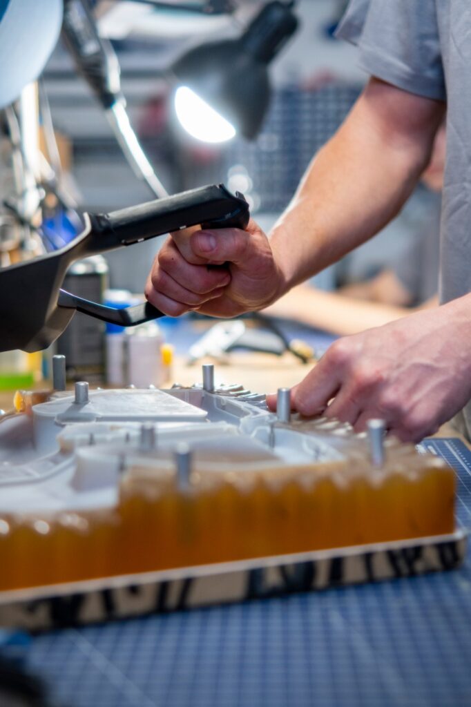 Jakmile byl návrh odladěný, vytvořili jsme master model pomocí SLA 3D tisku. Ten poskytuje vysokou přesnost a kvalitní povrch, což je zásadní pro další výrobu.